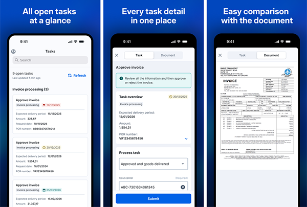 Robust task management: Access and manage all assigned tasks, organized by workflow. This helps you keep processes moving, even outside the office.