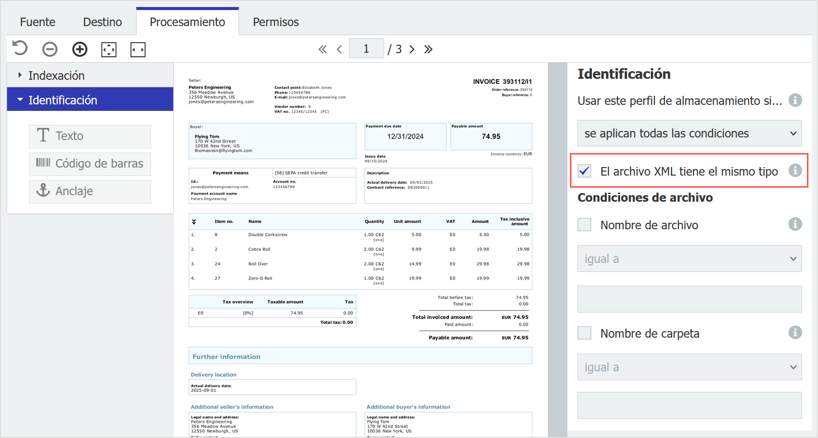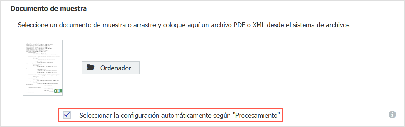 En la pestaña de Procesamiento, active la opción El archivo XML tiene el mismo tipo.